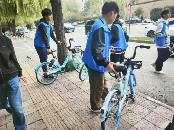 倡导绿色出行,组织成员在校园内外整理共享单车,推广文明使用公共资源的行为规范,通过实际行动传递社会公德心。