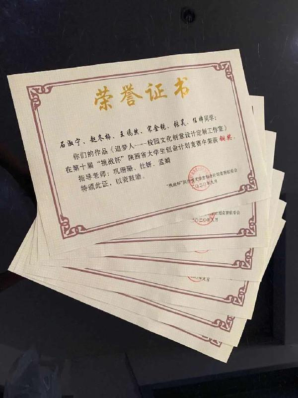 最终我校生物与环境工程学院“羊肚菌--助力脱贫攻坚新引擎”(项目负责人:吴一凡,指导教师:徐玲玲、张焱)荣获省赛银奖,机械与材料工程学院“智能拉光机装置研究”(项目负责人:王以磊,指导教师:刘凌)、信息工程学院“基于EEG的智能教学辅助系统”(项目负责人:田建章,指导教师:冯永亮、李浩、雷伟军)、文学院“面向尼泊尔中华语言文化教学云平台”(项目负责人:薛芝颖,指导教师:白晓莉、董洪杰)、艺术学院“追梦人--校园文化创意设计定制工作室”(项目负责人:石淑宁,指导教师:巩珊珊、杜妍、孟娟)、艺术学院“基于“一带一路”耀州瓷文创旅游产品”(项目负责人:刘燕洁,指导教师:刘小飞)五项作品荣获省赛铜奖。