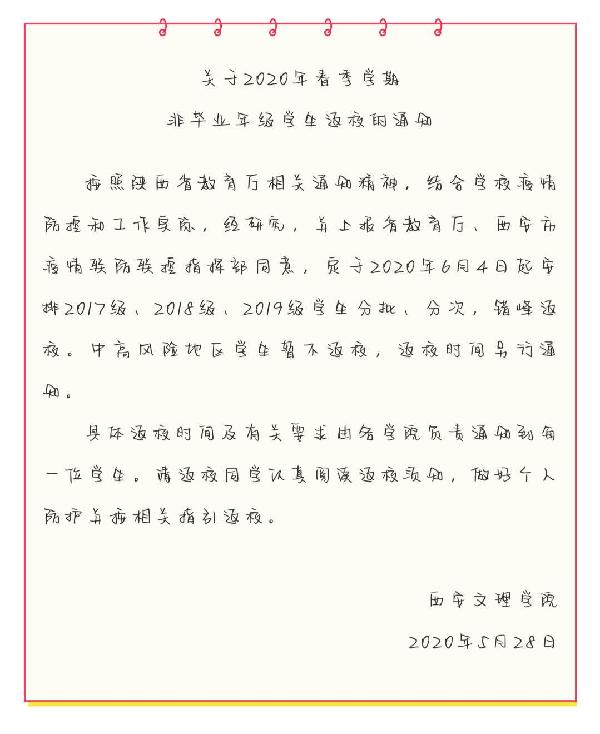 非毕业生返校通知