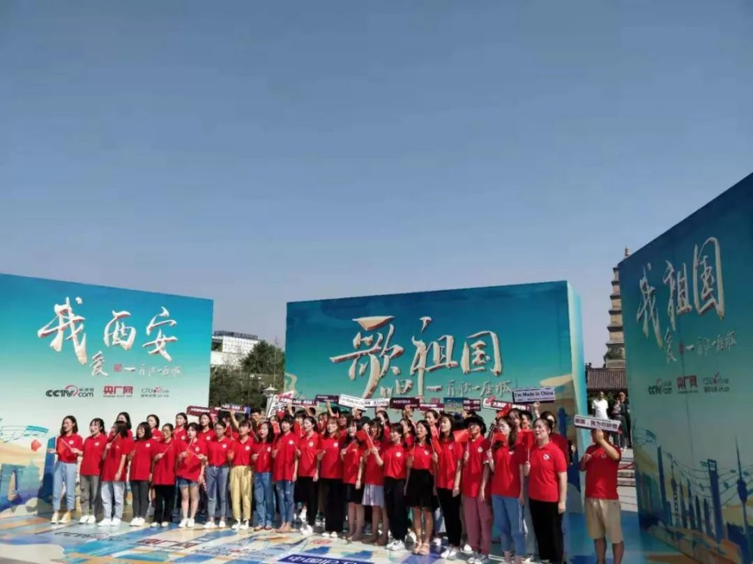 在主持人的带领下,西安文理学院的50名学生志愿者挥动手中的五星红旗,放声高唱《歌唱祖国》,歌声响彻大雁塔南广场。著名文化评论家肖云儒,全国人大代表、西安市劳动模范、西安广播电视台主持人孙维等人也来到现场,或献上墨宝、或倾情献唱,以自己的方式为祖国送上祝福。
