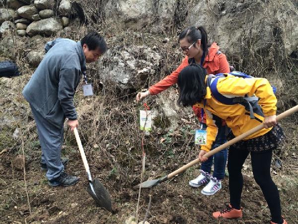 植树活动从上午10点半开始,一个多小时的活动时间里,50余名志愿者一起铲土挖坑、扶树填土、种下棵棵树苗用爱心和行动为美丽的太平国家森林公园新增了紫荆花和松树苗80余颗参加活动的青年教师马驰说:“爱护自然、拒绝雾霾、保护环境、人人有责,自己今天特意带着只有三岁的儿子参加活动,让孩子早早参加这种义务植树活动,是想从小培养他爱护自然,保护生态环境的意识。”