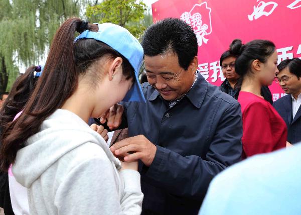9月18日上午,我校2014年“我爱我家—师生共创和谐校园”活动启动仪式在镜湖小广场隆重举行。校党委书记雷英杰、副校长韩权、工会主席权会玲、校务委员曹鸿以及师生代表200余人参加了启动仪式。