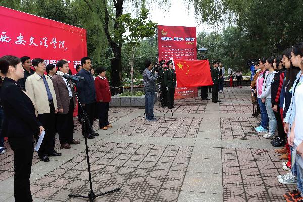 上午十点,在纪念“九一八”事变的防空警报鸣响后,仪式正式开始。副校长韩权宣读了《西安文理学院“我爱我家—师生共创和谐校园”活动方案》。今年活动从9月18日开始,持续至10月18日,以“铭记历史、自强不息、报效祖国”—理性爱国教育活动、“敦德励学、精工博艺、知行相长”—促“三风建设”活动、“走下网络、走出宿舍、走向操场”—“三走”主题活动、“魅力文理、绿色环保、文明先行”—校园环境维护活动为主要内容。